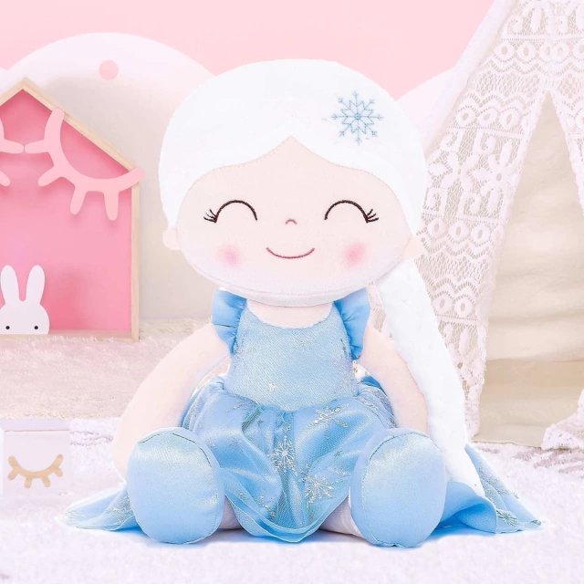 Encante-se com a delicadeza da Boneca Gloveleya Princesa Elsa, feita em pelúcia ultra macia com acabamento premium.