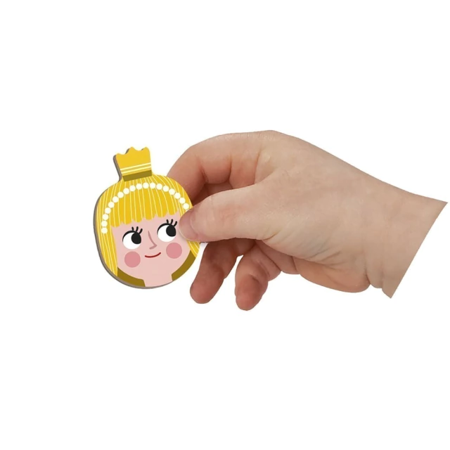 Composto por 40 peças magnéticas, incluindo 30 partes intercambiáveis e 10 cartões de modelo, este jogo educativo permite que as crianças criem suas próprias cenas mágicas, inspiradas nos mais famosos contos de fadas.