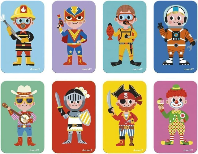 Contém: 36 peças magnéticas + 8 cartões ilustrados com modelos de fantasias